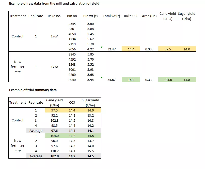 - Mills can provide information on how much cane is required in a rake (often 30-40 t) to receive a separate CCS analysis. This affects the area required in any treatment (row length, number of rows, likely yield)