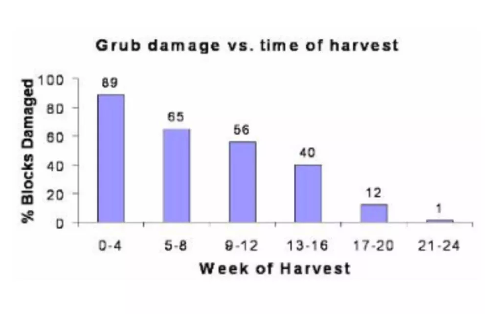 All crop symptoms are a result of the feeding activity of the grubs on plant roots. Symptoms may be either above or below ground and may be apparent at different times of the year and crop stage.