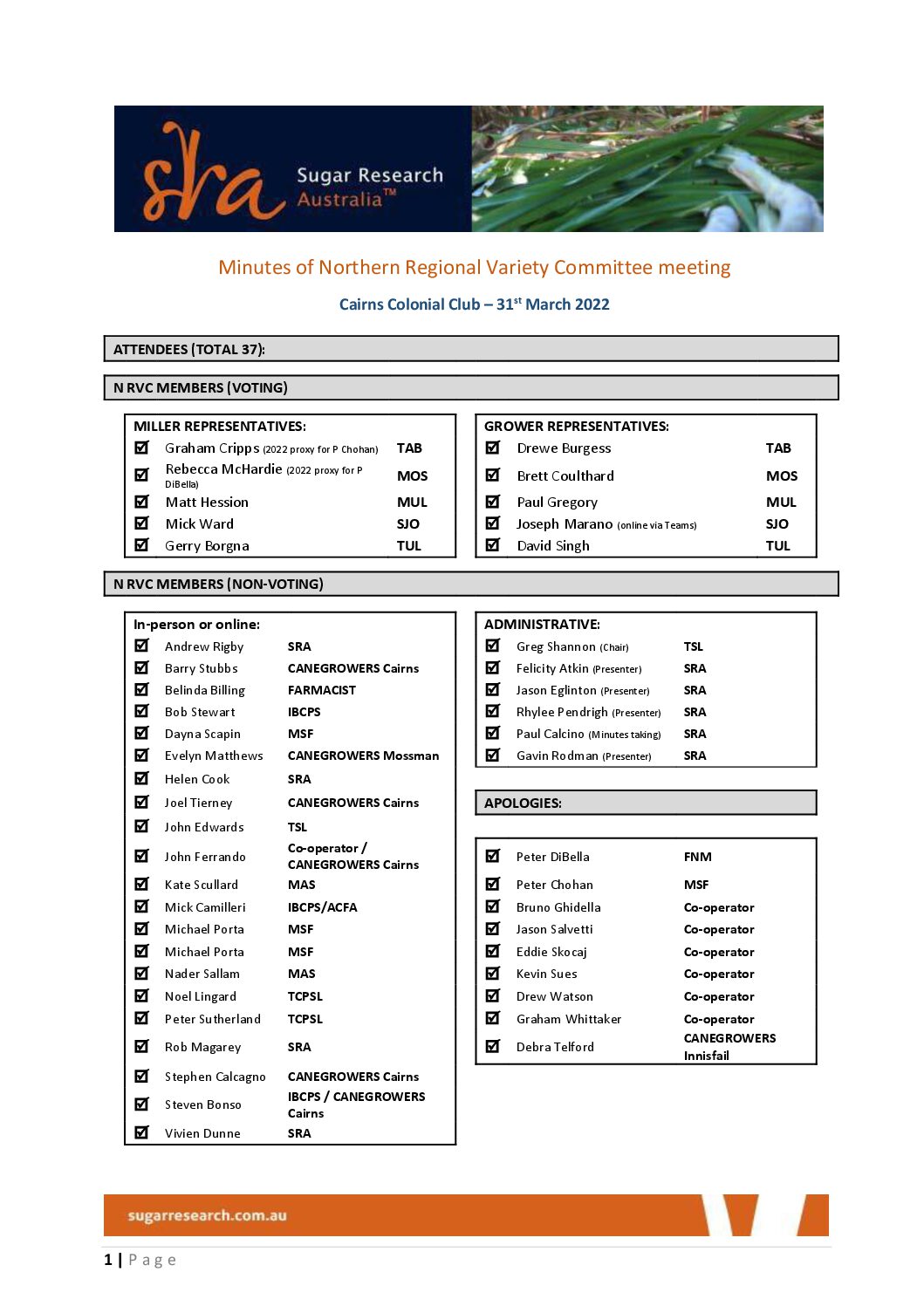 Northern RVC meeting 31 March 2022